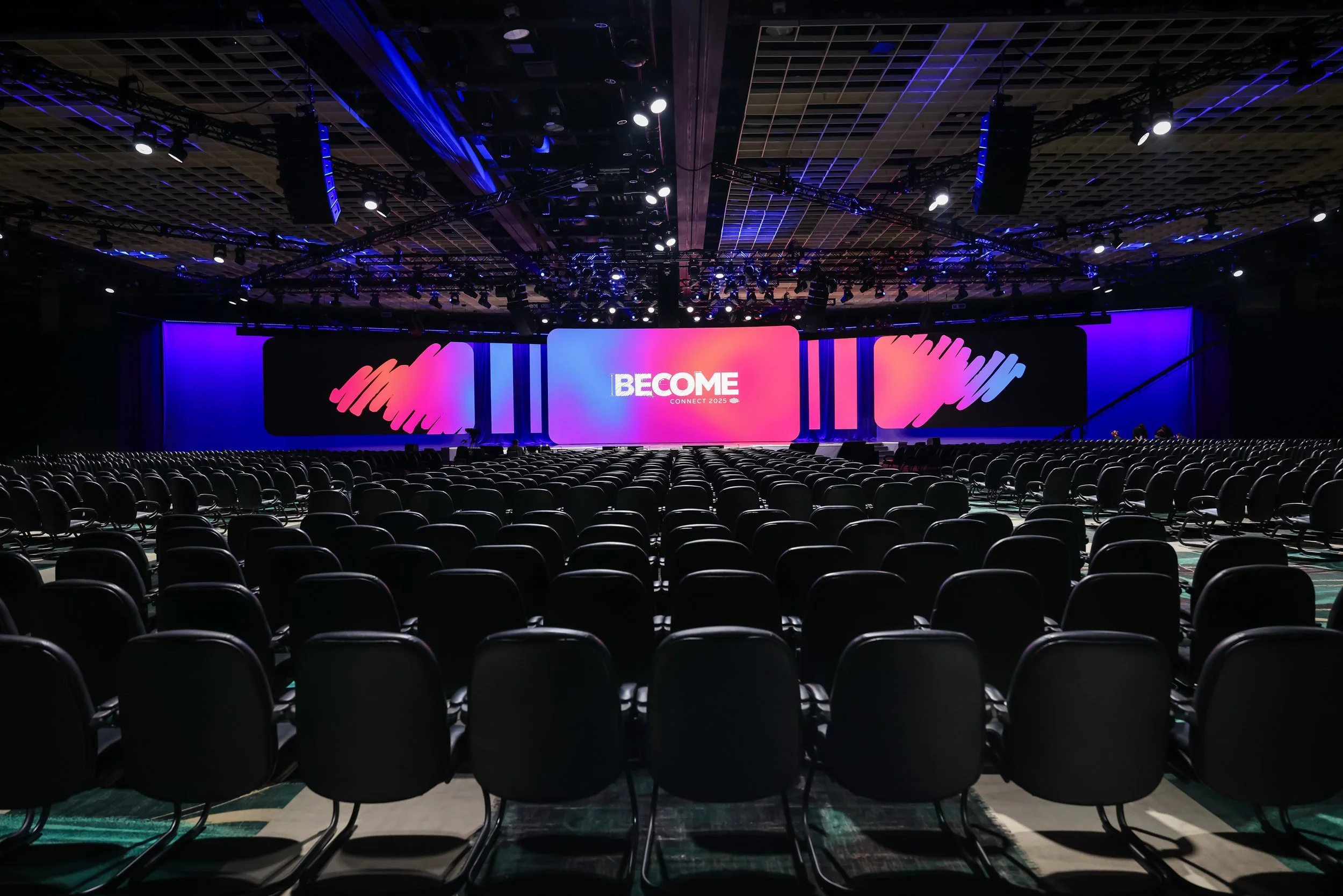 The logo I designed offered a loose beginning only to slowly ‘Become’ a solid piece. Using that theme, we transformed the convention center into becoming a fun brand experience.